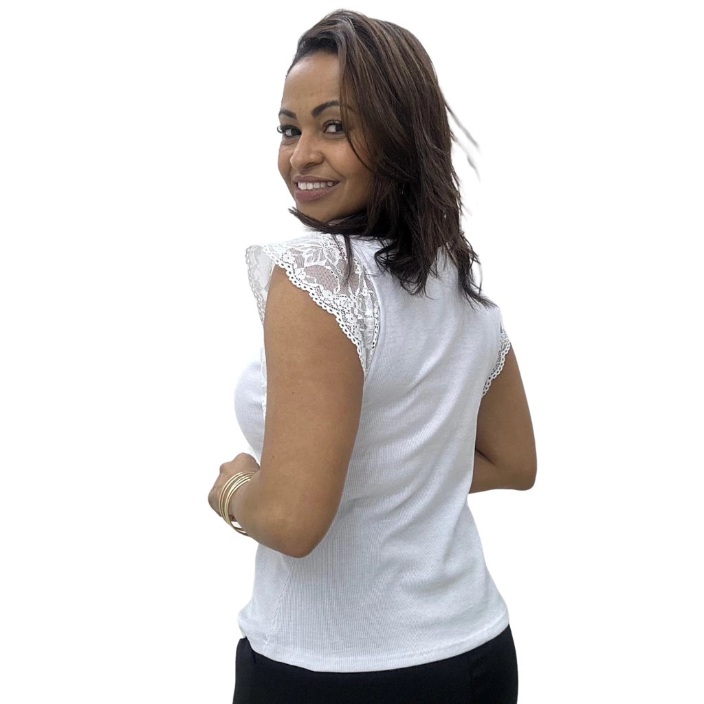 A Blusa Manga Curta Renda é perfeita para quem ama unir conforto e feminilidade em uma só peça. Possui gola alta redonda e manga curta com lindo detalhe em renda. Confeccionada em ribana que é uma malha canelada com alta elasticidade e conforto. Com design delicado e acabamento sofisticado, ela traz o charme da renda aplicada que valoriza o visual e adiciona um toque romântico e moderno às suas produções. É aquela peça que transita entre o casual e o elegante. Perfeita para trabalhar, passear ou sair à noite; ela se adapta a qualquer ocasião com charme e leveza.