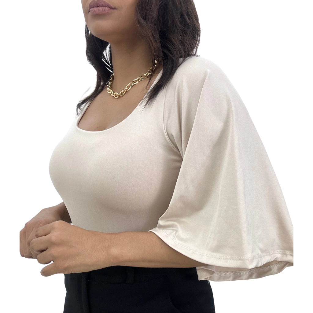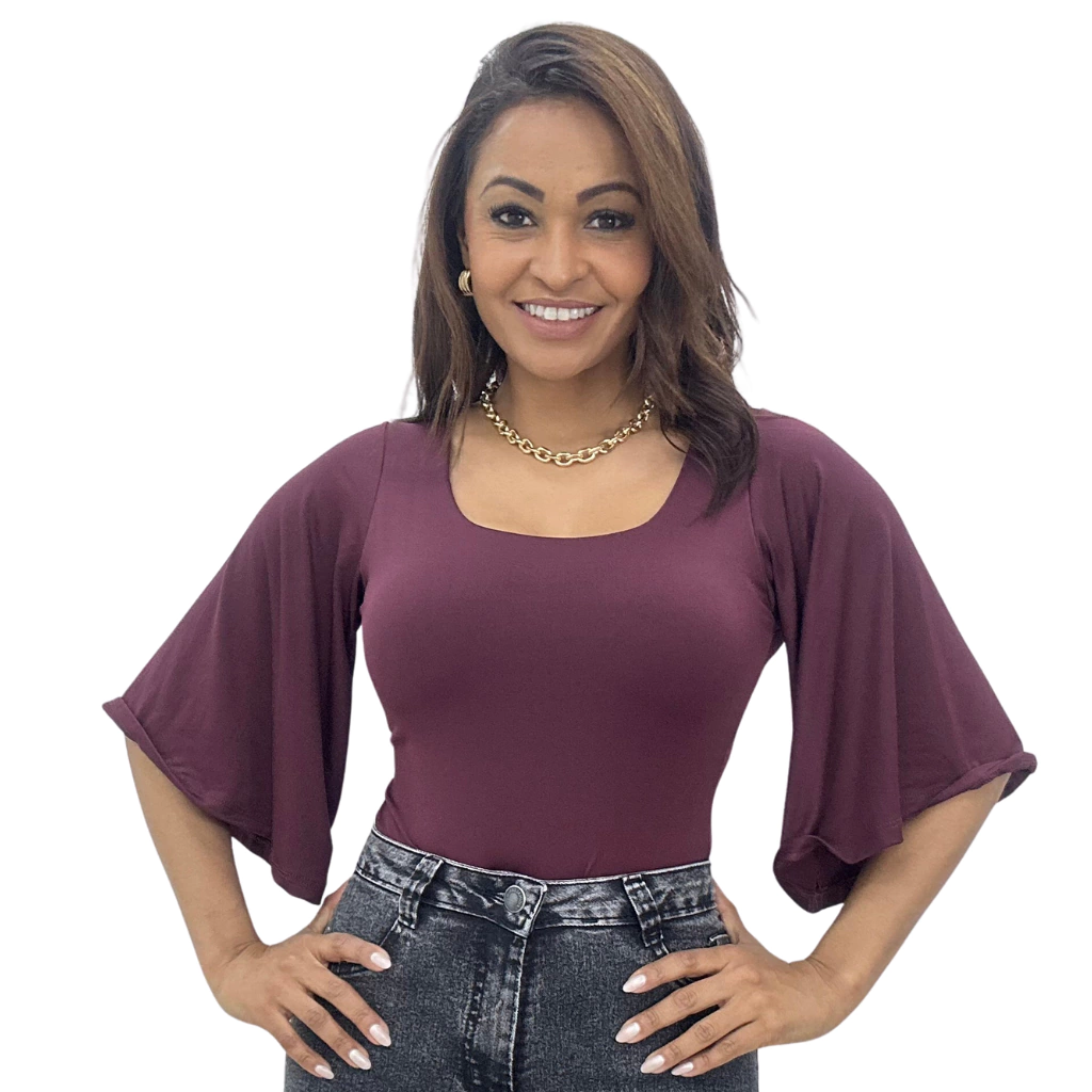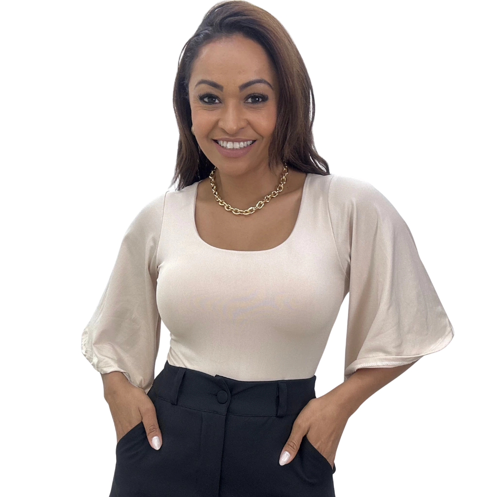 Este Body Manga Flare 7/8 traz sofisticação e personalidade. Confeccionado no tecido suplex que oferece elasticidade, boa durabilidade e um toque macio. Com o corte justo no corpo, valorizando as curvas, ele possui mangas flare 7/8 que proporcionam movimento e leveza ao visual, forro na região do busto, decote redondo e fechamento na região inferior por fechos. Perfeito para compor looks para trabalho, eventos ou um visual mais casual-chique.