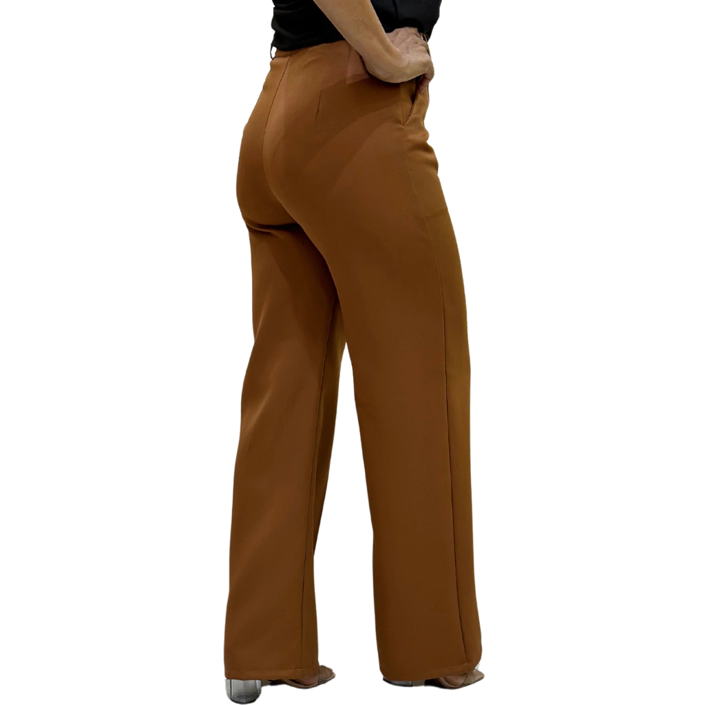 Sair e arrasar seja para uma festa, happy hour ou trabalho essa calça é simplesmente perfeita. A Calça Pantalona Alfaiataria Denise, possui fechamento frontal por zíper e botão, passantes no cós, acinturada com caimento solto nas pernas, detalhes em pregas na parte de trás e bolsos frontais. A alfaiataria consiste em peças mais estruturadas que tem corte mais reto e fino, muito utilizada para criação de looks elegantes, sofisticados e casuais.
